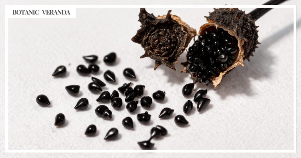 実が乾いてきて、中に黒い小さな粒が見えるようになると、採種のタイミングを考えやすくなります。作業するときは、白い紙や白い皿の上で行うと、種を見失いにくくなります。